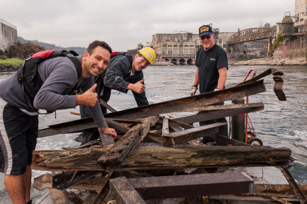 Our team has been working over the years to pull industrial debris and trash from the base of the falls and the surrounding area. With the help of our volunteers and partners we’ve been able to remove thousands of pounds of equipment via barge and crane.